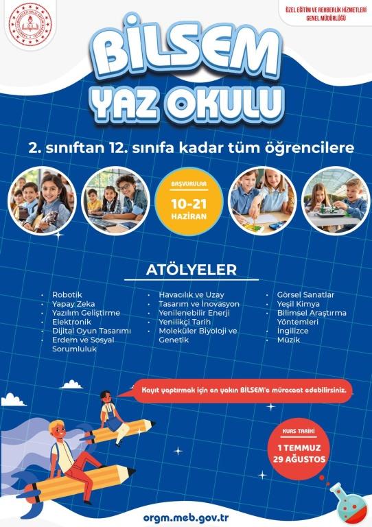 2. Sınıftan 12. sınıfa kadar tüm öğrencilere BİLSEM...